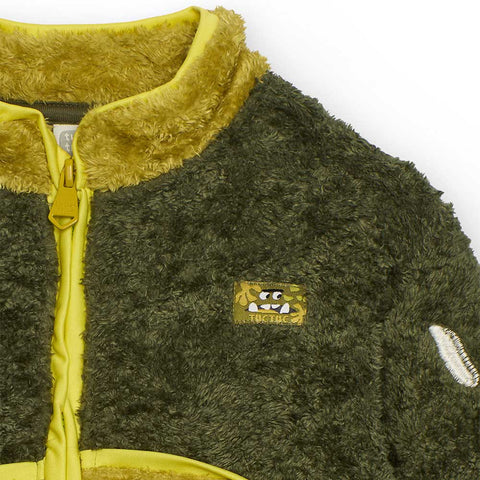 Fur jacket from the Tuc Tuc Children's Clothing Line, with zip closure, front pockets, and a monster embroidered on the back.