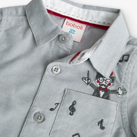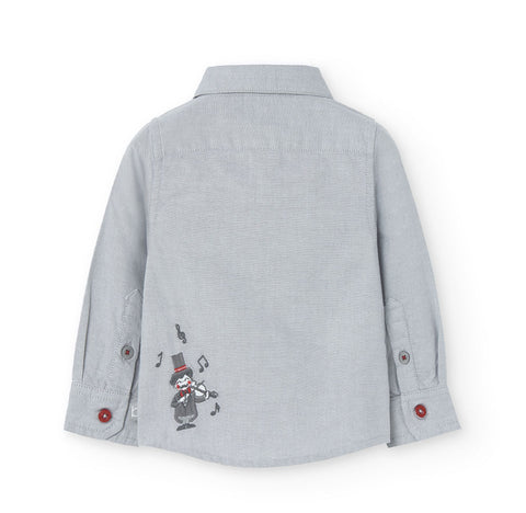 Long-sleeved shirt from Boboli Children's Clothing Line, solid color with embroidery on the bottomof conductor.
