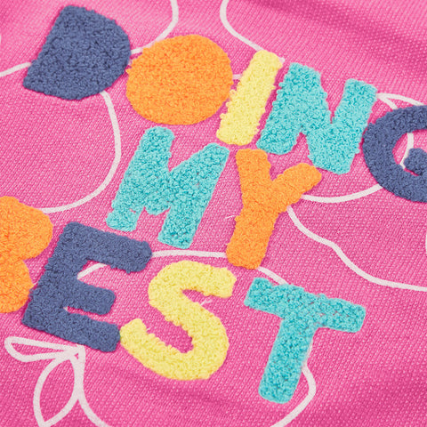 Sweatshirt from the Children's Clothing Line Boboli, with a cut on the back and a multicolored boucle text application on the front.