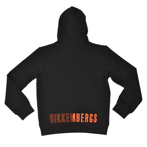Sweatshirt from the Bikkembergs children's clothing line, with hood, zip closure and small fluorescent logo on one side.