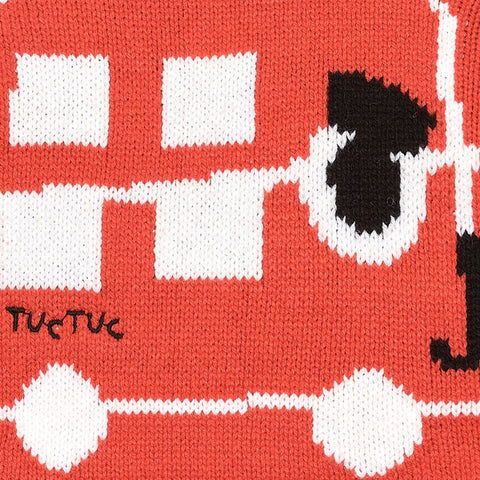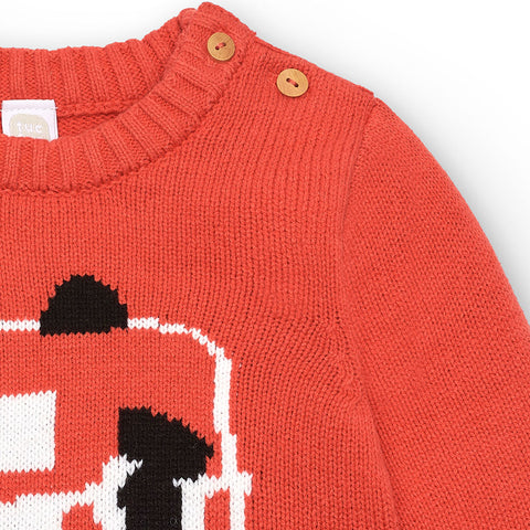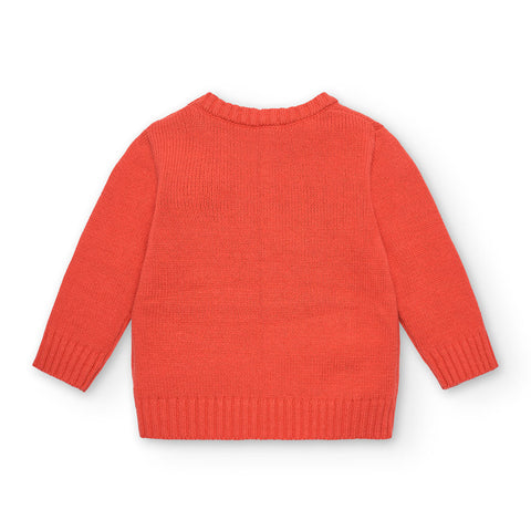 Maglione della Linea Abbigliamento Bambino Tuc Tuc, a tinta unita con disegni sul davanti in contrasto di colore.