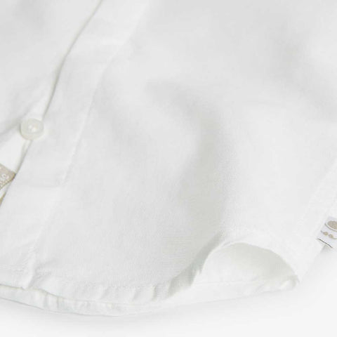 Linen blend shirt from the Boboli children's clothing line with matching bow tie. Classic collar and adjustable long sleeves with button and buttonhole.