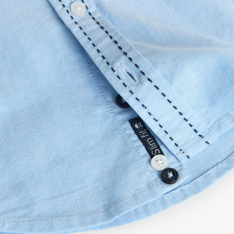 Long sleeve shirt from Boboli Children's Clothing Line, oxford fabric, with contrasting color stitching.