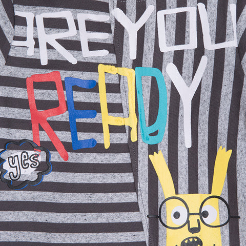 T-shirts from the Tuc Tuc Tuc Clothing Line, with striped pattern and buttons on the epaulettes and on the front colorful designs.
