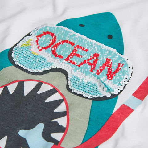 T-shirt from the Boboli children's clothing line, with colored print on the front and application of colored sequins.