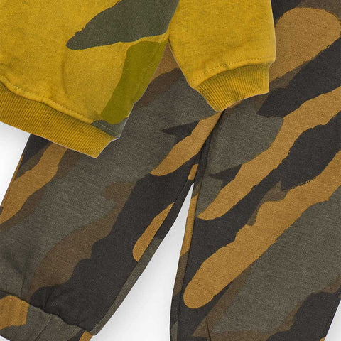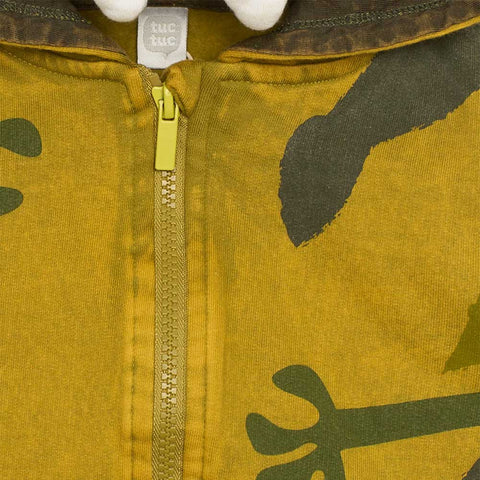 Tuta della Linea Abbigliamento Bambino tuc Tuc, con giacca chiusa con zip, cappuccio con orecchie. Pantalone mimetico con polsino sul fondo.