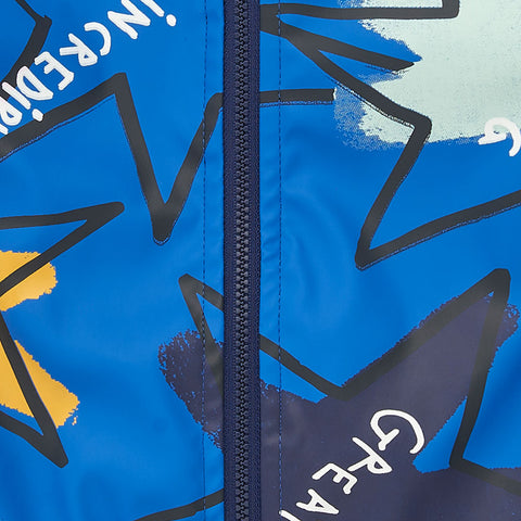 Waxed jacket from the Tuc Tuc Children's Clothing Line, with fleece lining and hood. Pattern in bright colors.