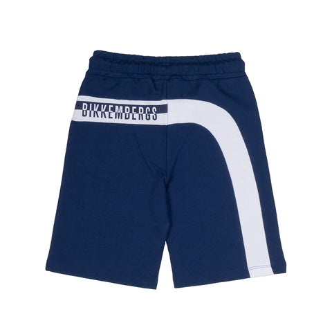 Bermuda shorts in brushed fleece from the Bikkembergs children's clothing line, with drawstring at the waist and logo on the back.