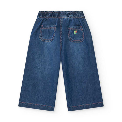 Jeans trousers from the Tuc Tuc Girls' Clothing Line, with an elastic waistband and multicolored embroidered stars at the hem.