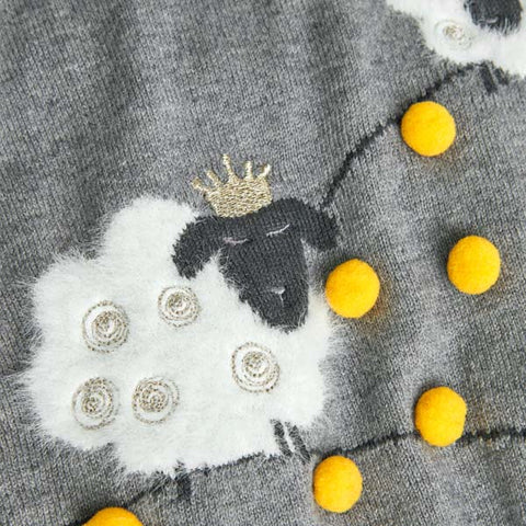 Knitted dress from the Boboli Girls' Clothing Line, with application of pom poms and lurex embroidery.