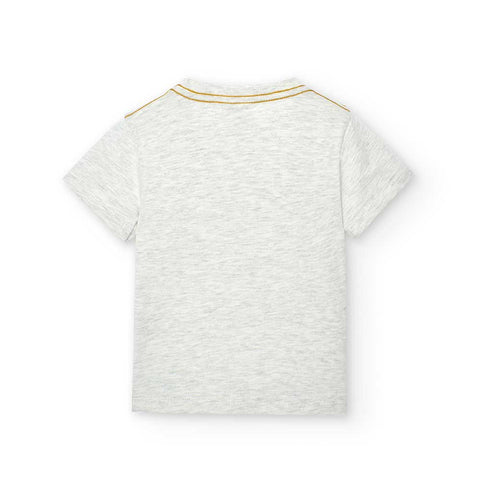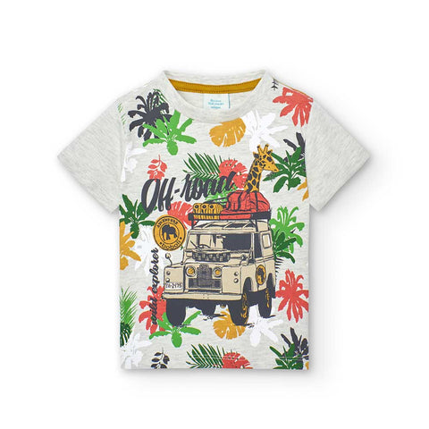 Two-piece suit from the Boboli children's clothing line, with safari patterned t-shirt and shorts with elastic waistband in a solid colour.