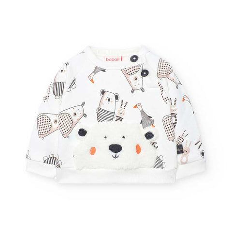 Two-piece set from the Boboli Children's Clothing Line, featuring soft solid color pants and a patterned sweatshirt with teddy bears.