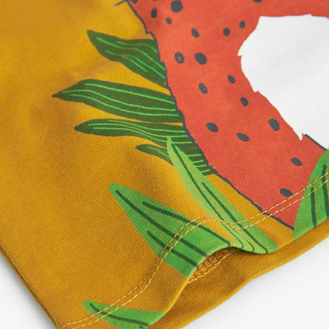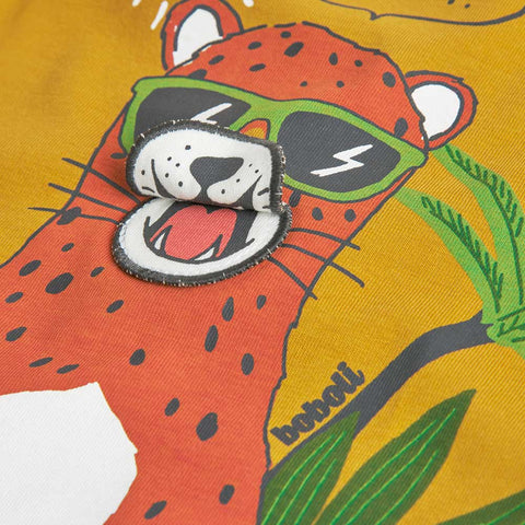 T-shirt from the Boboli children's clothing line, with colorful print on the front and fabric game application.