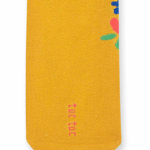 Wool tights from the Bmabina Tuc Tuc clothing line, with floral pattern on a yellow background.