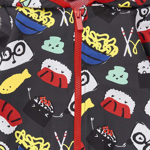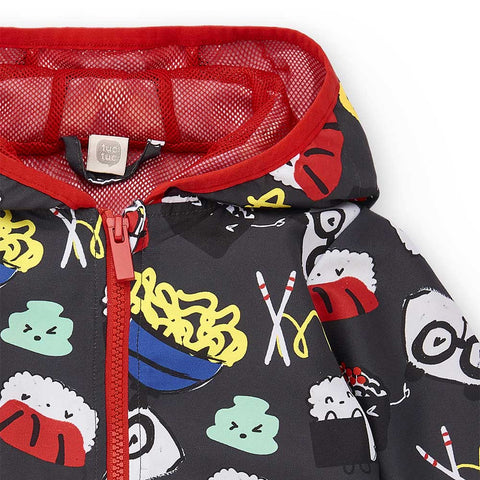 Windbreaker jacket from the Tuc Tuc Children's Clothing Line, with hood and mesh lining inside. Beautiful all-over pattern and small pockets on the front.