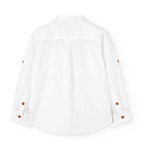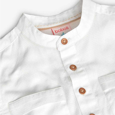 Long-sleeved shirt from the Boboli Children's Clothing Line, with a mandarin collar, pockets on the front, and wooden buttons.