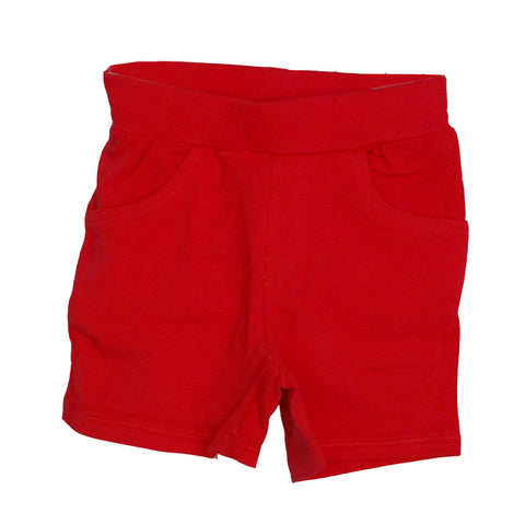 2 pcs. outfit from the children's clothing line Mirtillo. Half sleeve T-shirt with print on the front; collar and sleeves in contrast, press studs on the shoulder. Plain shorts with pockets and elastic waistband.