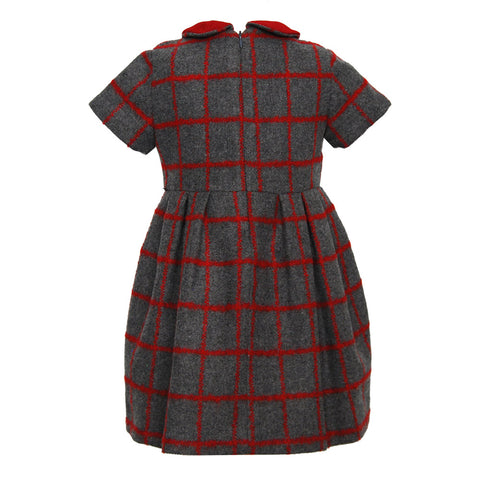 Dress from the Ambarabà girl's clothing line with checks in red tones. Collar