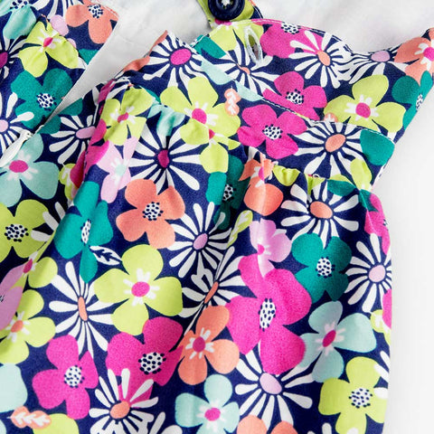 Satin dress from the Boboli Girls' Clothing Line, with multicolor floral pattern. straps crossed at the back and matching culotte in small sizes.