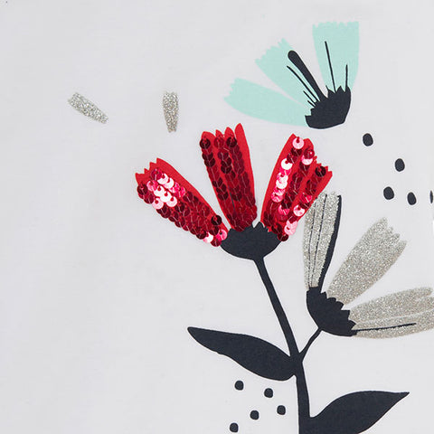 T-shirt from the Tuc Tuc Girl's Clothing Line, Sea Lovers collection, with colorful print on the front and glitter and sequin details. Application of elastic and curls on the edge of the sleeves.