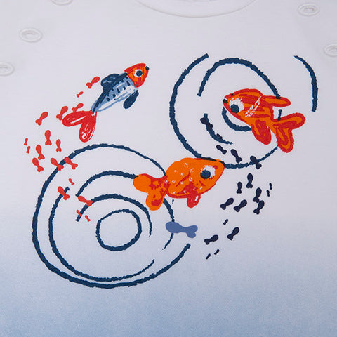 Blouse from the Tuc Tuc Girl's Clothing Line with perforated details on the shoulder straps and colorful goldfish print.