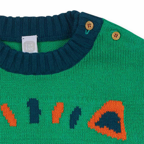 Sweater from the Tuc Tuc children's clothing line, with bright colors and an animal design on the front.