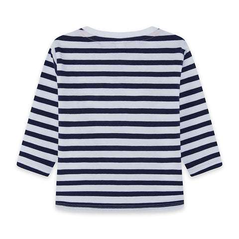 Striped T-shirt from the tuc Tuc Childrenswear Line, Red Submarine collection, with pocket on the front and small buttons in the collar.