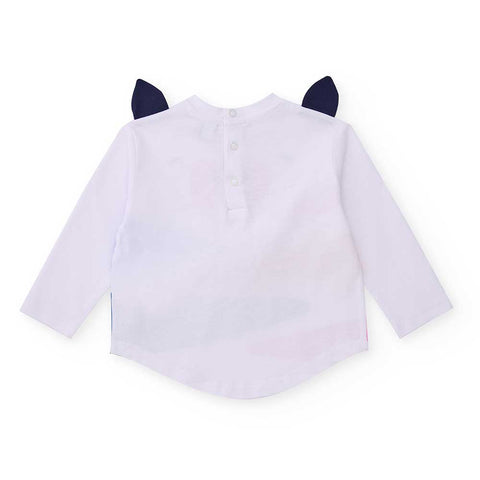 Long sleeve shirt from the Tuc Tuc Girls' Clothing Line, with ears applied on the straps and a printed animal on the front.
