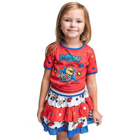 Skirt with flounces from the Rosalita Senoritas girl's clothing line, with elastic at the waist and riccetto applied on the bottom.
