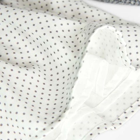 Dress from the Boboli Girls' Clothing Line, with knitted top, and skirt and collar in light fabric with gray polka dots on an ivory background.