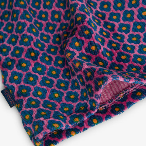 Dress from the Boboli Children's Clothing Line, made of micro-satin velvet with a shirt collar and small flower pattern.