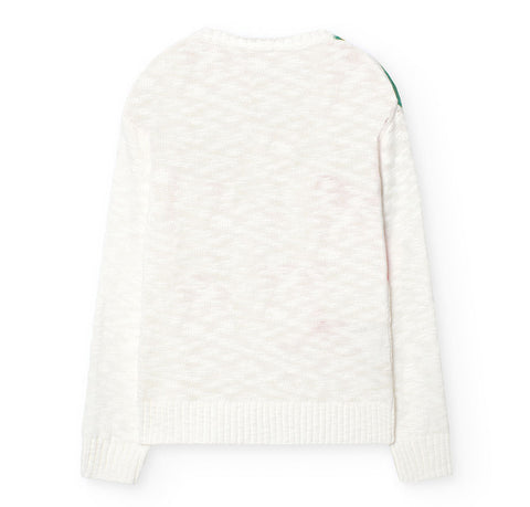 Sweater from the Boboli Girls' Clothing Line, with regular cut and multicolor work on the front .