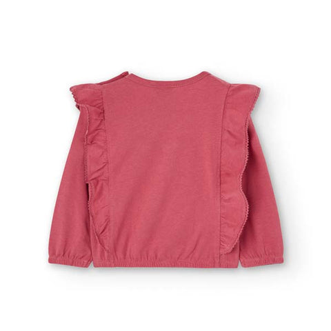 T-shirt from the Boboli girls' clothing line, with multicolor print on the front, elastic on the bottom and curls on the front.