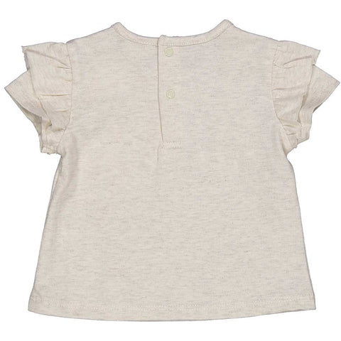 T-shirt from the Birba girls' clothing line, with curls on the sleeves and an animal print fabric appliqué on the front. Press buttons on the back.
