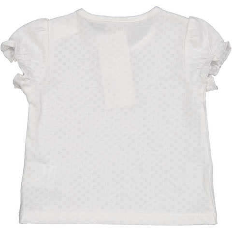 T-shirt from the Birba girls' clothing line, with short sleeves, press studs on the shoulder and light perforated fabric.
