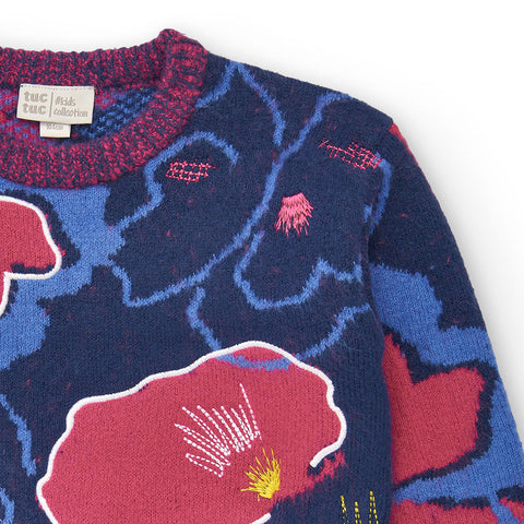 Sweater from the Tuc Tuc Girls' Clothing Line, with a double weave and floral pattern.