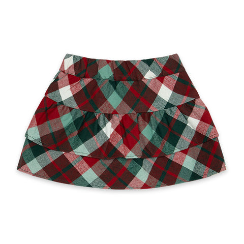 Double flounce skirt, from the Tuc Tuc girl's clothing line, Highlands collection, with tartan pattern and four buttons on the front.