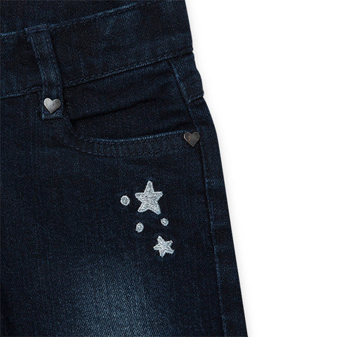 Jeans trousers from the Tuc Tuc girl's clothing line, Glaciar collection, with embroidery on the front and adjustable waist size.