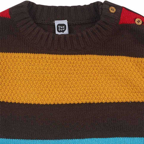Sweater from the Tuc Tuc children's clothing line, with multicolor stripes and, on the front, pocket closed with zip.