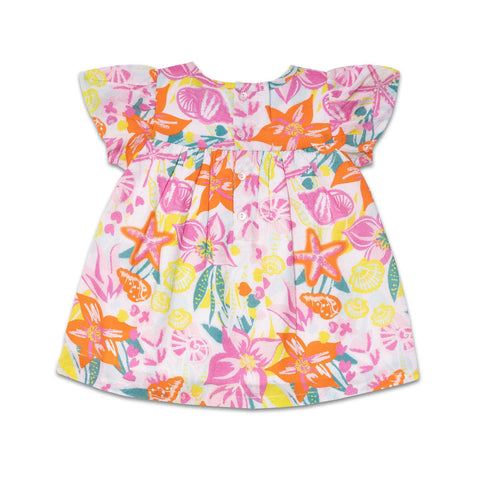 Abitino from the Tuc Tuc Girls' Clothing Line, loose model cut at the chest. Pattern with marine subject in fluorescent colors.