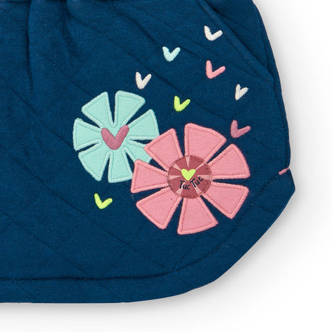 Mini skirt from the Tuc Tuc Girls' Clothing Line, quilted with an appliqued flower on one side.