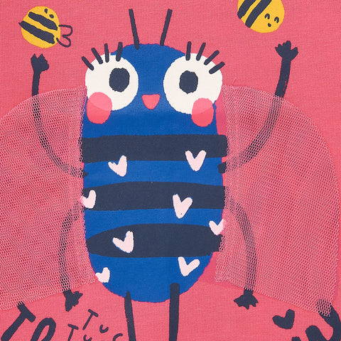 T-shirt from the Tuc Tuc Girls' Clothing Line, with long sleeves and a multicolor print on the front along with a fabric applique in neon colors.