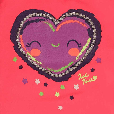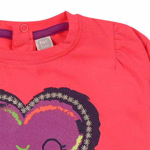 T-shirt from the Tuc Tuc girls' clothing line, in fluorescent color with heart-shaped print on the front.