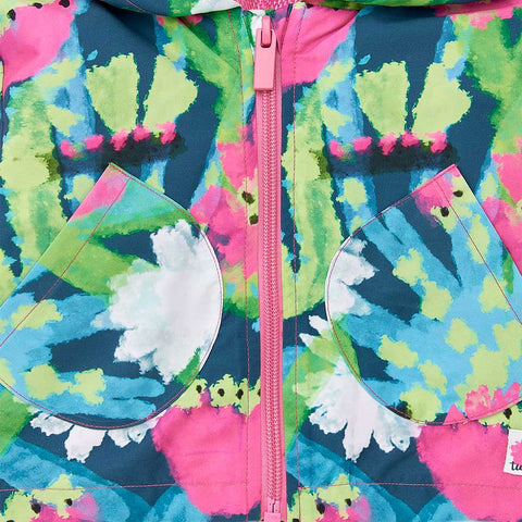 Windproof jacket from the Tuc Tuc girls' clothing line, with hood and pockets on the front. zip closure and fluorescent colored floral pattern.