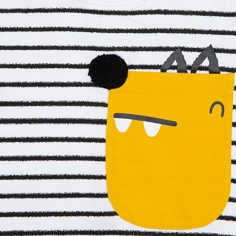 Long-sleeved T-shirt from the Tuc Tuc Children's Clothing line, Bee collection Happy, with a pocket on the front and buttons on the shoulder strap.