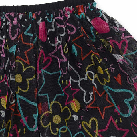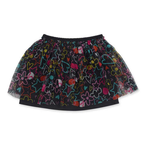 Skirt from the Tuc Tuc girls' clothing line, with tulle in a multicolored pattern on the outside....