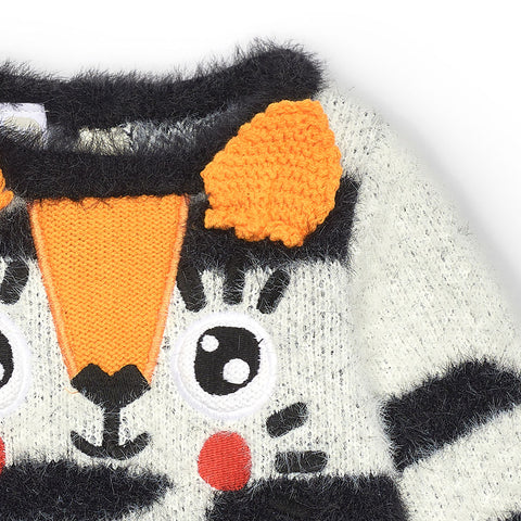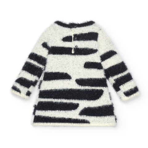 Knit dress from the Tuc Tuc Girl's Clothing Line, with small pockets on the front and embroidered eyes.