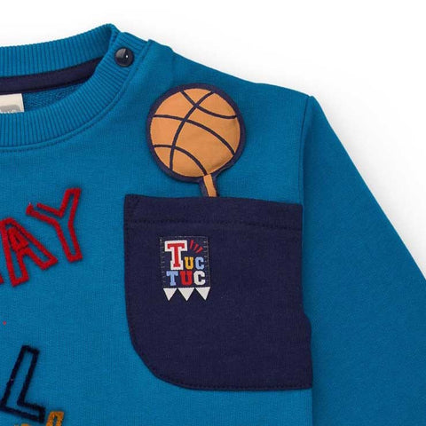 Complete suit of the Tuc Tuc Children's Clothing Line, with crew neck sweatshirt and pants with cuff at the bottom.
