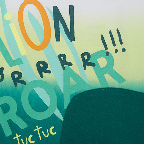T-shirt from the tuc Tuc Childrenswear Line, In The Jungle collection, with front pocket with multicolor fabric applications. Small buttons on the shoulder strap pressure.