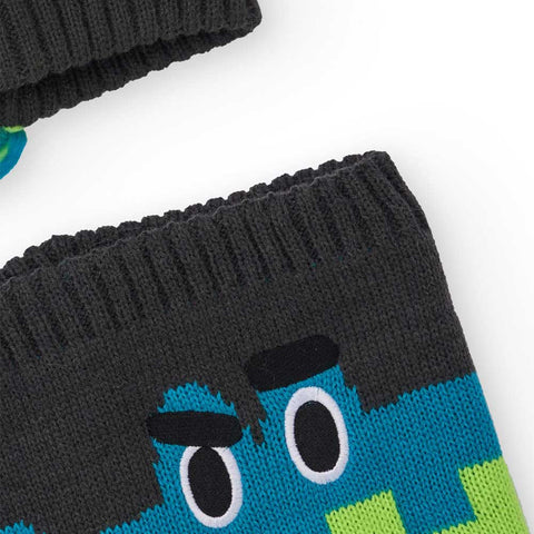 Set of the Children's Clothing Line Tuc Tuc, with a helmet-shaped hat, with fringes on the back and a neck warmer with fleece inside.